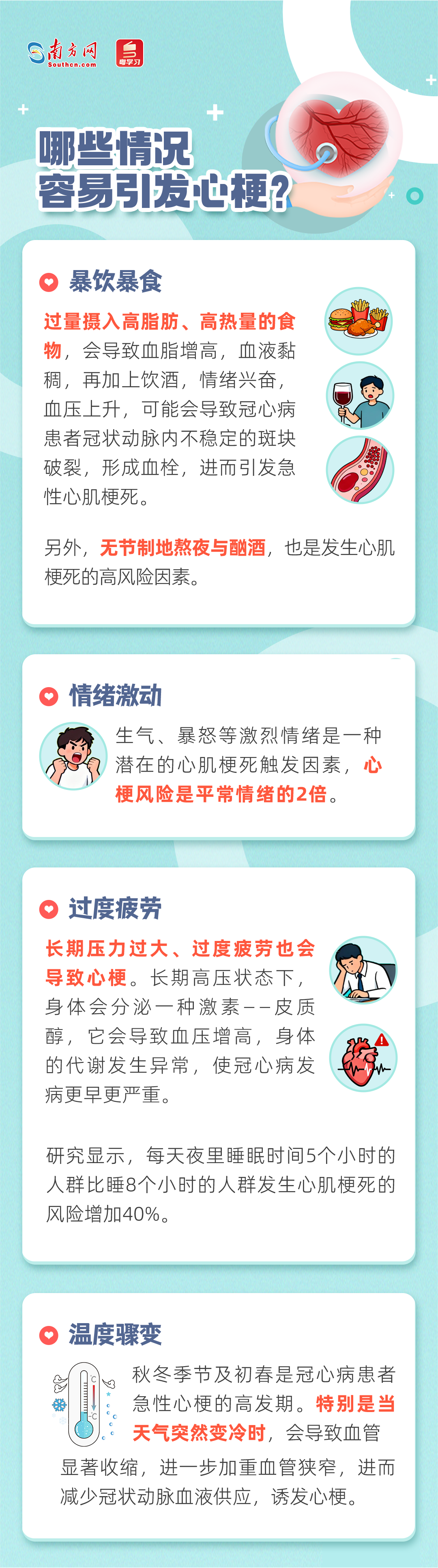 内容摘要:一冷就“要命”!寒潮来袭,急性心梗进入高发季节。心梗并非只威胁老年人,近年来,心梗发病年龄正持续走低,年轻人也需高度警惕。心梗发作前有哪些先兆症状?学会识别身体的求救信号,在关键时刻能挽救生命,一起来